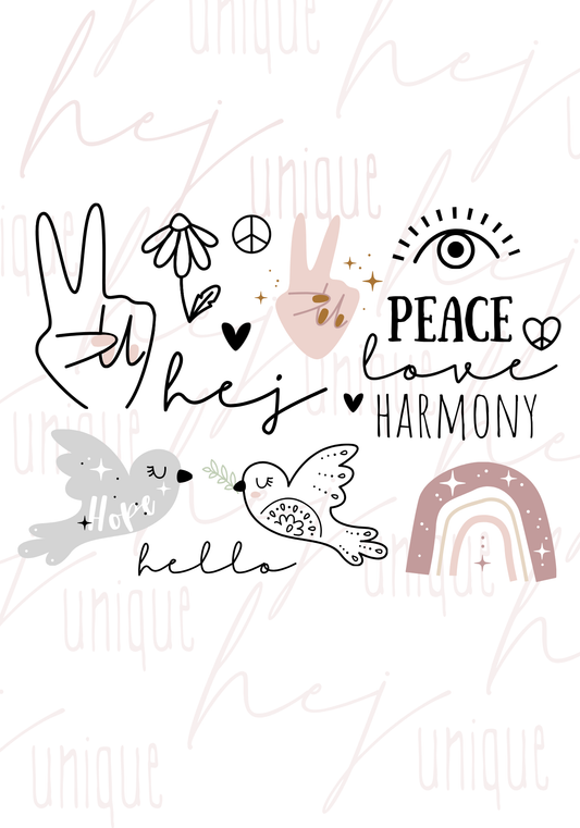 Rub On Aufkleber Boho Peace Love A6
